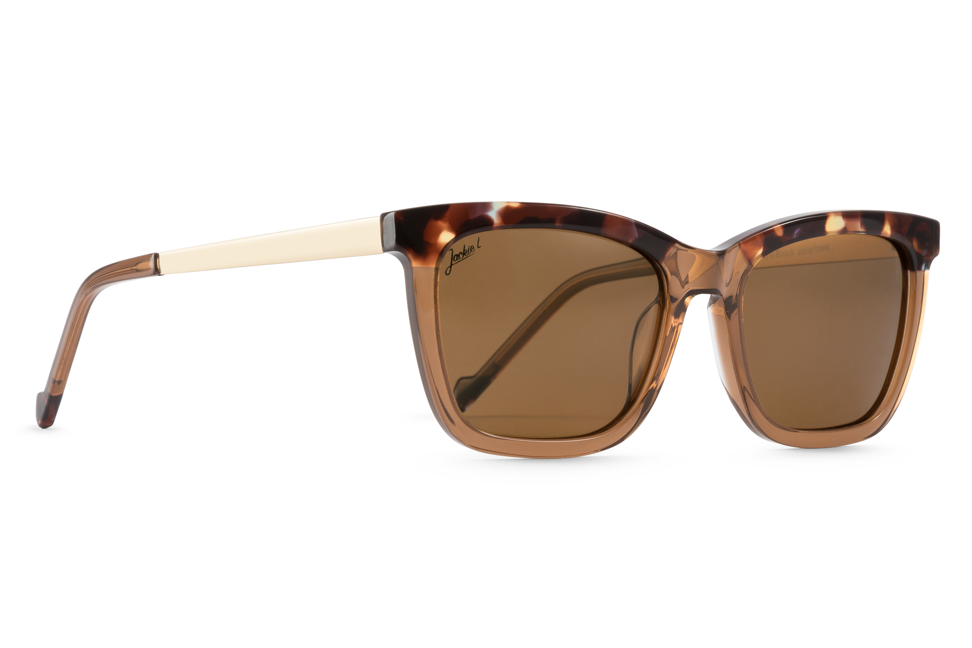 De Jackie L Annecy is een stijvolle rechhoekige vrouwelijke zonnebril van bruin havana acetaat met bruine gepolariseerde TAC glazen.